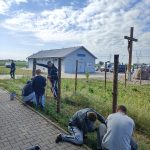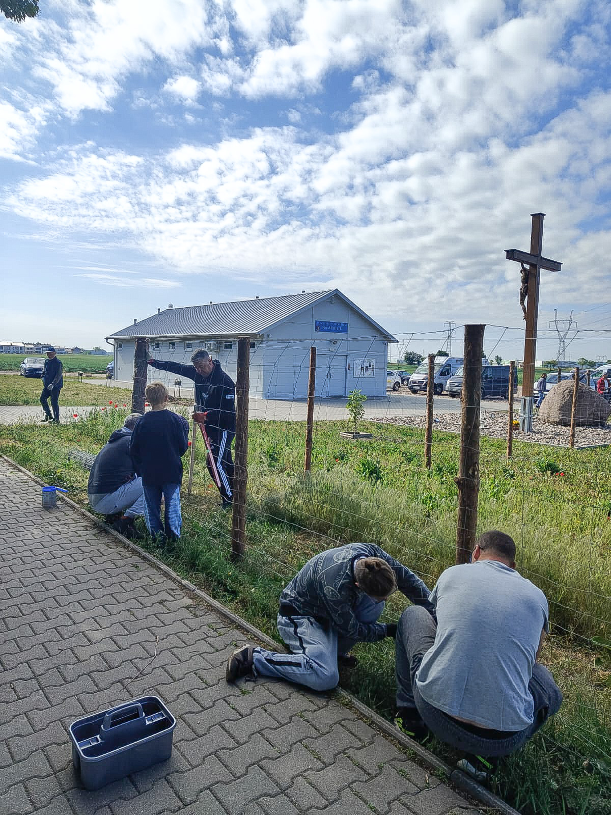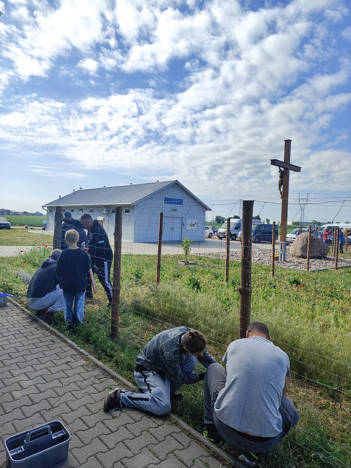 24 maja 2025r. na nasz apel o pomoc przy budowie ogrodzenia odpowiedziało wielu naszych parafian, byli też parafianie ze św. Marcina i Wincentego. Silni pracowici i chętni do pomocy mężczyźni – Boży ludzie. Bóg zapłać!