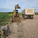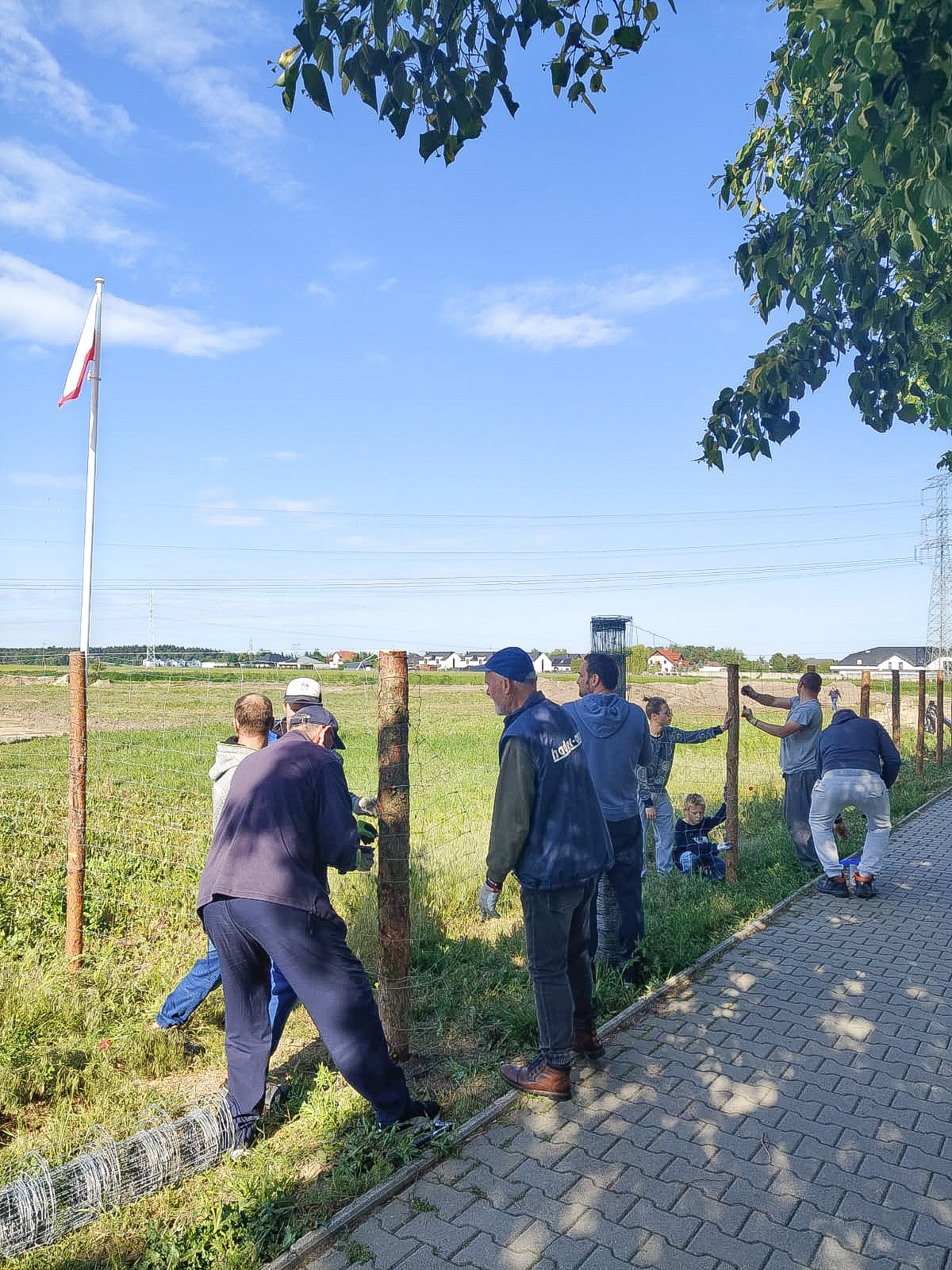 Koniecznie muszę napomknąć, że zanim przystąpiliśmy do budowy ogrodzenia Bartek wykonał prace geodezyjne, wytyczenie. We własnym zakresie zapewnił koparkę, transport. Dzięki niemu słupki stoją w równej linii, dzięki sołtysowi Krzysztofowi trzymają pion. Brama to majstersztyk – piony poziomy, a podarował ją nam Kostek.
